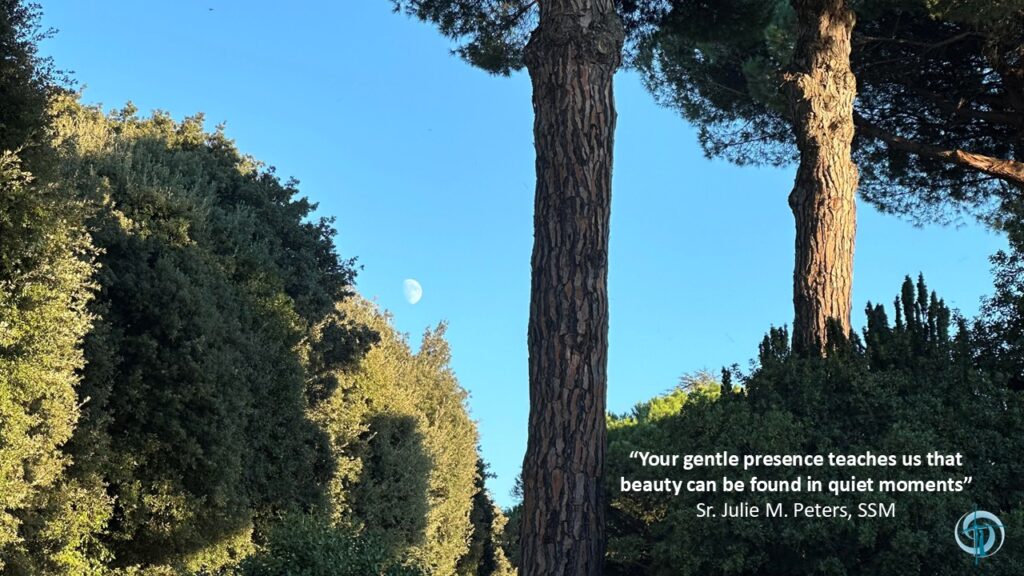 Moon Reflection Calendar 2026 – March March 1, 2026 Marta Ruggieri Calendar, JPIC, News Your gentle presence teaches us thatbeauty can be found in quiet moments. Sr. Julie M. Peters, SSM